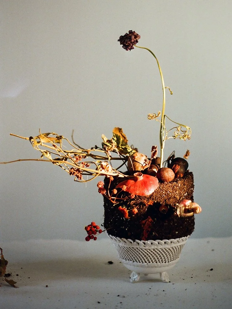 A few from my ongoing series of arrangements that I make from things that I collect while walking, kitchen scraps, trash and objects I own or make. They mostly serve as a visual diary- a way to mark and remember the way I was seeing, feeling, collecting and thinking on a certain day. I find them funny, sad, hopeful, silly- just like life.